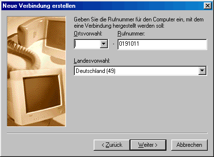2. Die neue Rufnummer für den PPP-Zugang lautet 0191011. Tragen Sie sie ein und klicken Sie auf ,,Fertigstellen‘.